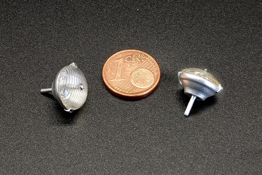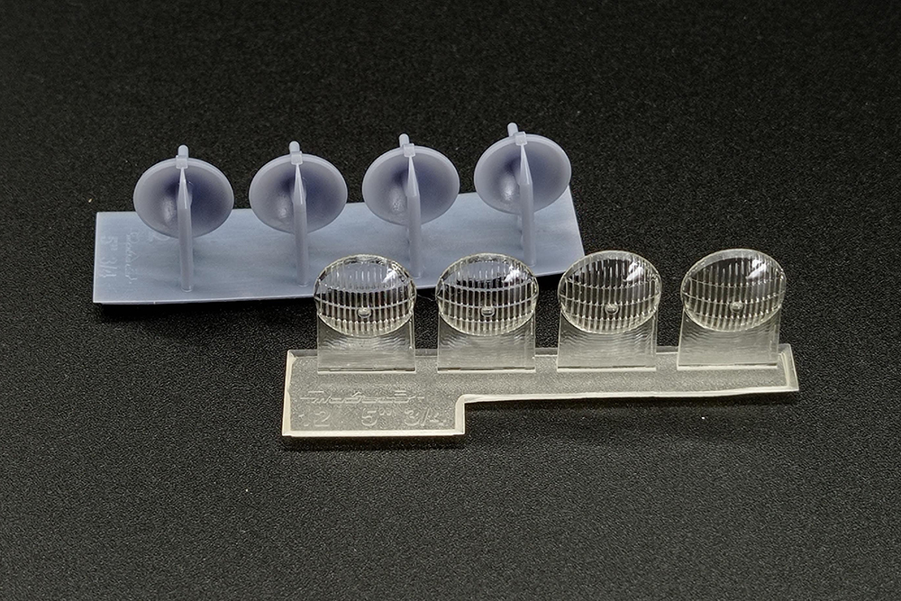Las piezas están impresas en resina gris para el cuerpo del faro y transparente para su cristal.