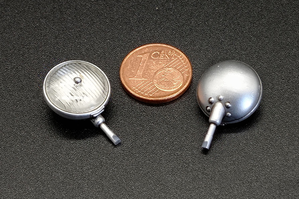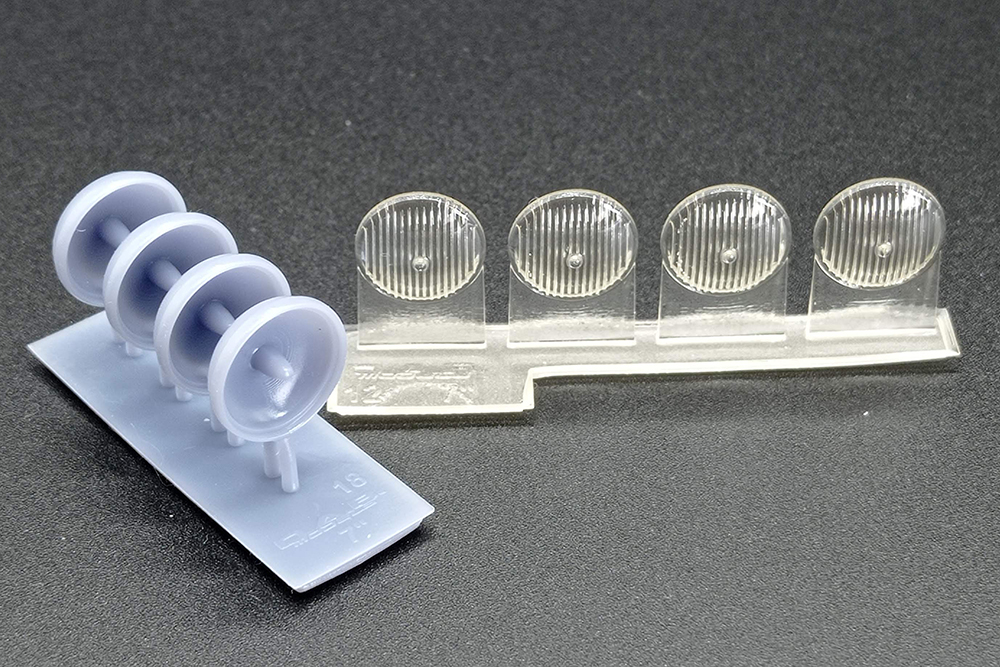 Las piezas están impresas en resina gris para el cuerpo del faro y transparente para su cristal.