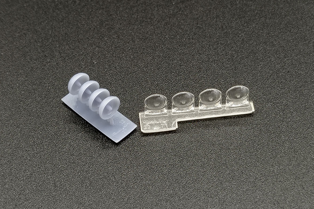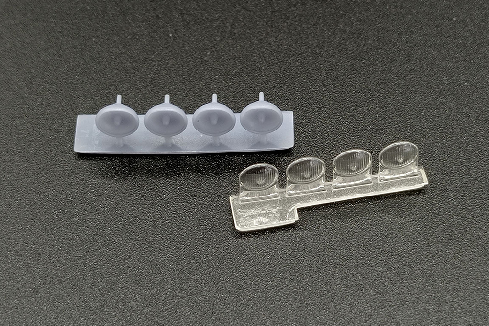 Las piezas están impresas en resina gris para el cuerpo del faro y transparente para su cristal.