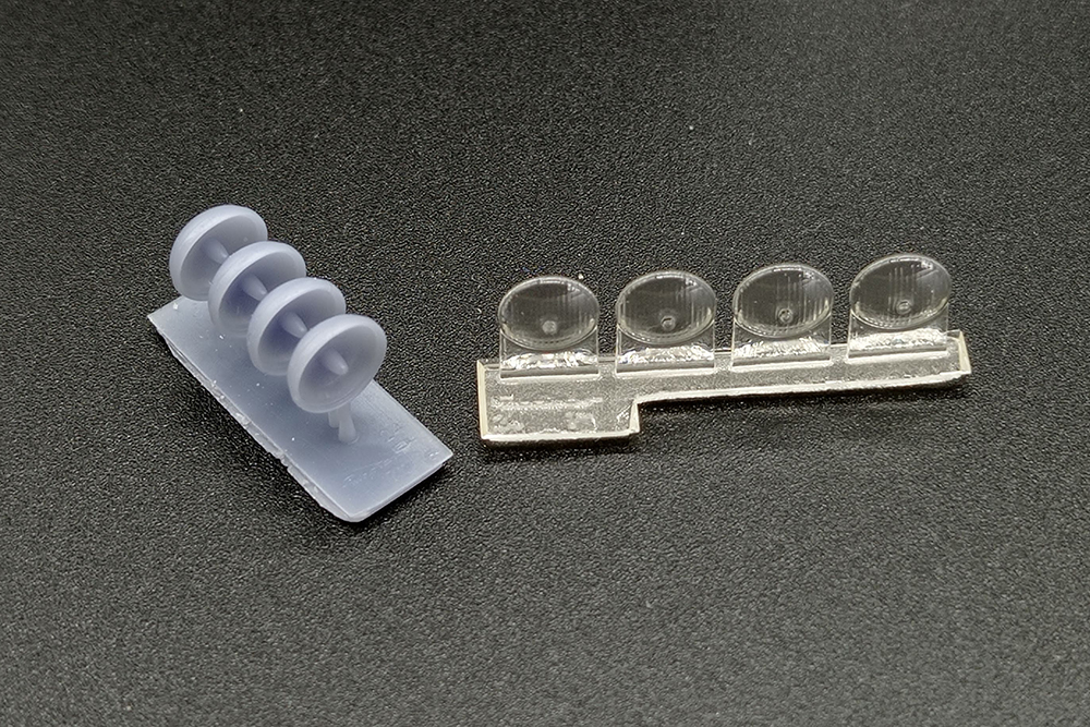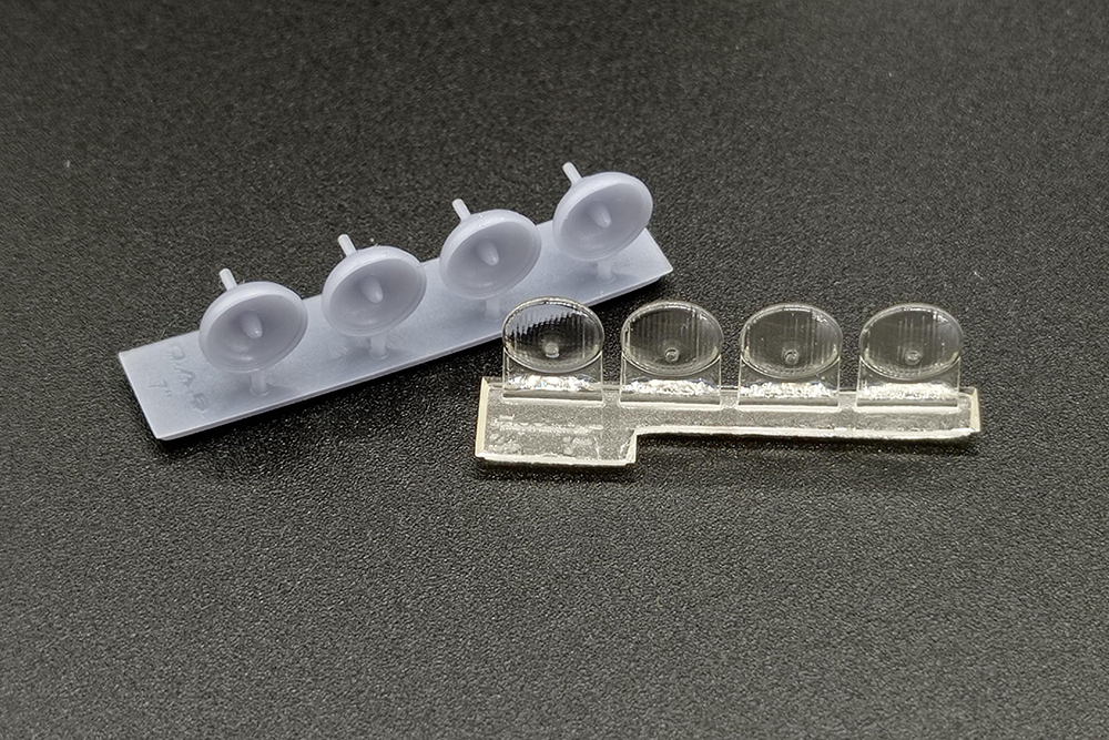 Las piezas están impresas en resina gris para el cuerpo del faro y transparente para su cristal.