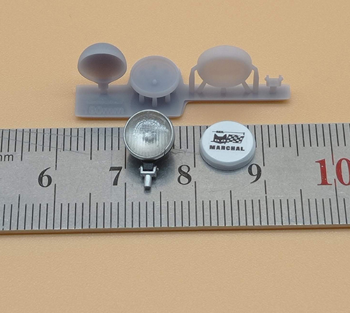 Las piezas están impresas en resina gris para el cuerpo del faro y transparente para su cristal.