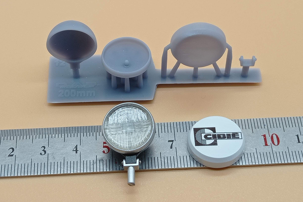 Las piezas están impresas en resina gris para el cuerpo del faro y transparente para su cristal.