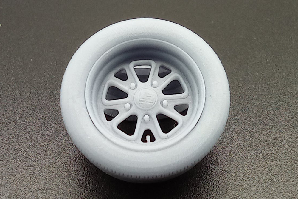 Llanta a escala 1/24 con el diseño personal del coleccionista de Porsche Magnus Walker.